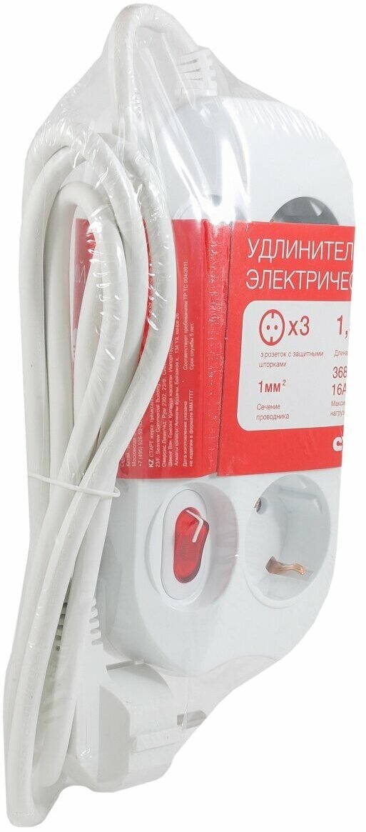 Отзывы на Удлинитель старт на 3 розетки с индивидуальными кнопками выключения, ПВС 3х1 мм2, 1,5метра