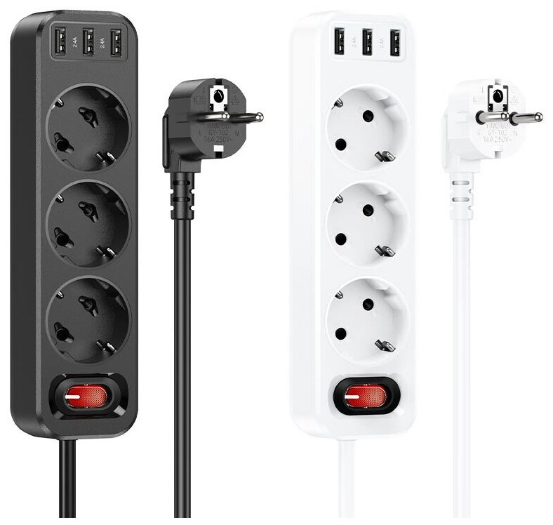 10 цен на Удлинитель сетевой, сетевой фильтр, розетка с USB (3гн, 3*USB) 1.8м NS2 Черный HOCO