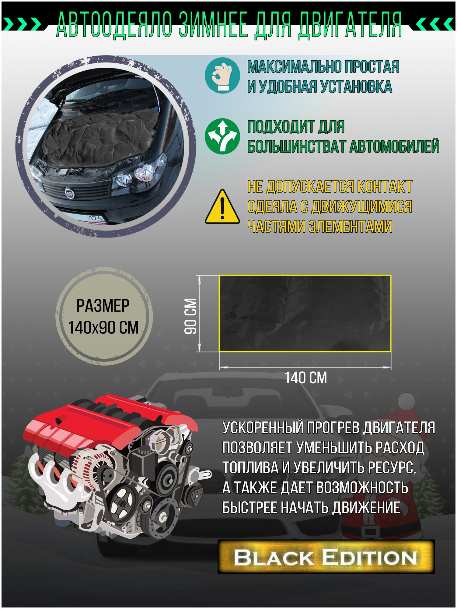 Автоодеяло для двигателя автомобиля / Утеплитель двигателя 140х90 см, черное информация: