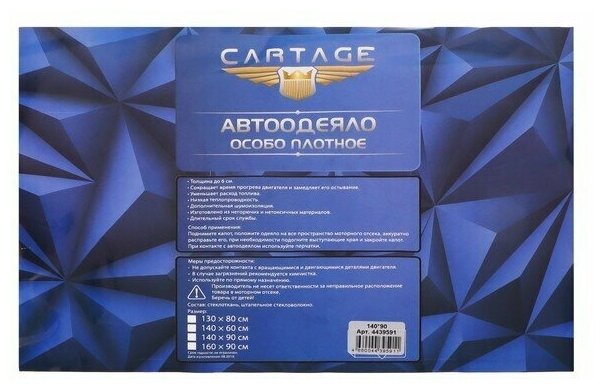 Утеплитель двигателя Cartage Автоодеяло особо плотное 4465141 1400x600 мм