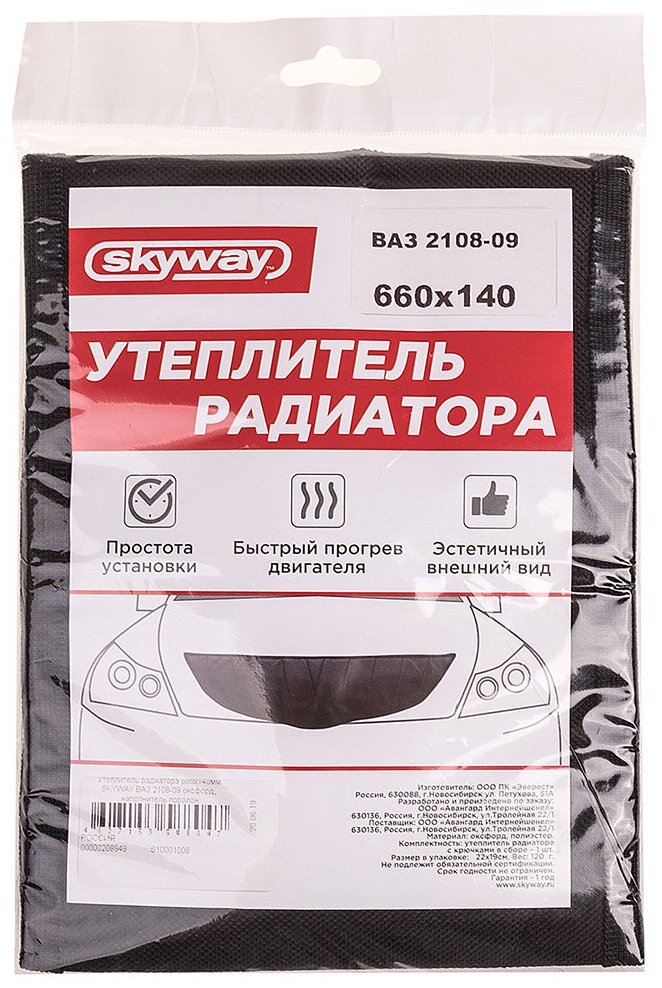 SKYWAY S10001006 Утеплитель радиатора 660х140мм ВАЗ 2108-09 оксфорд, наполнитель поролон; SKYWAY 410 ₽