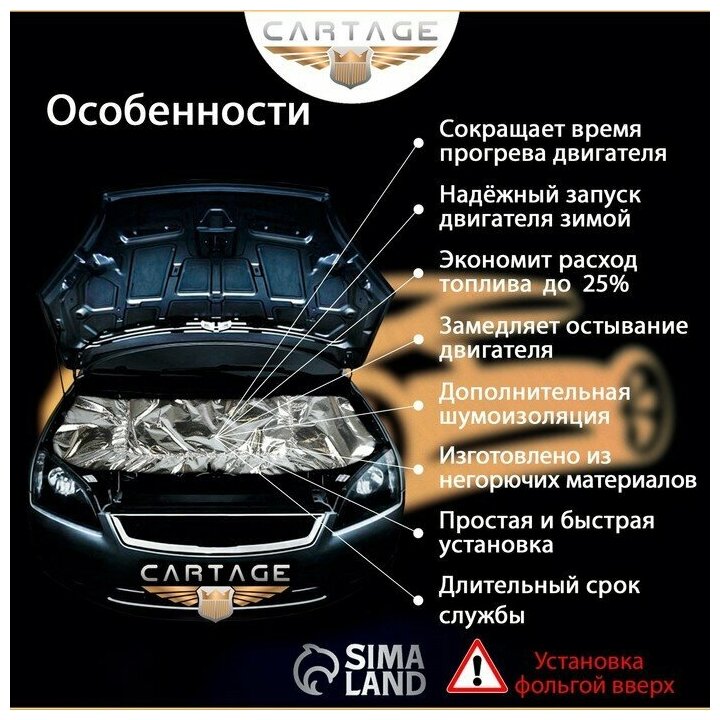10 цен на Автоодеяло для двигателя Cartage, 140 х 60 см, фольгированное, чёрное