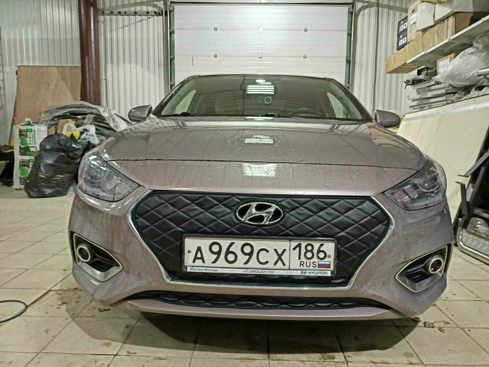 Отзывы на Утеплитель решетки радиатора зимний для Hyundai Solaris 2017-2020 Строчка Чёрная Ромбы Комплект