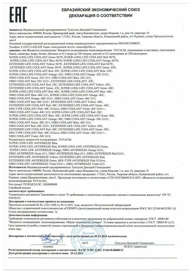 10 цен на Антифриз Totachi Niro Coolant Green G11 -40°c 1кг TOTACHI арт. 43201