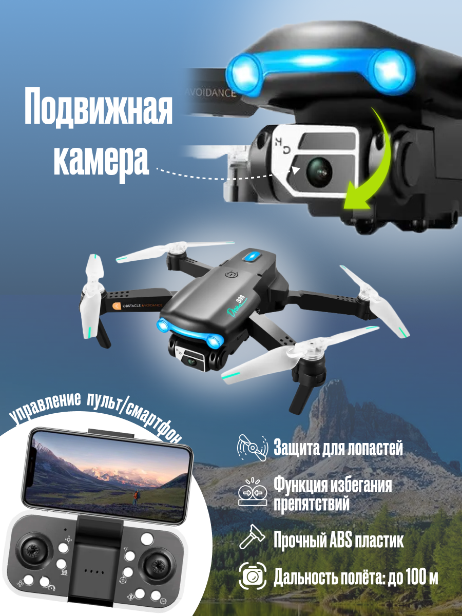 Квадрокоптер S98 с двойной подвижной камерой FHD, дрон складной информация: