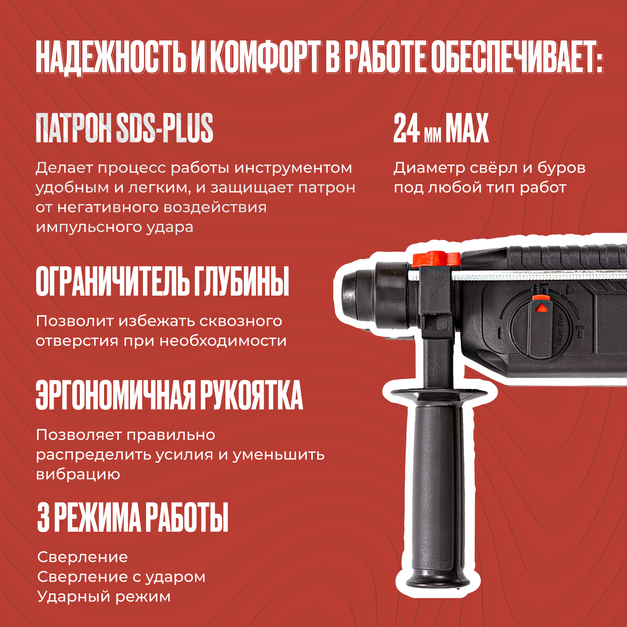 | Макс. диаметр сверления (бетон) | 24 мм |