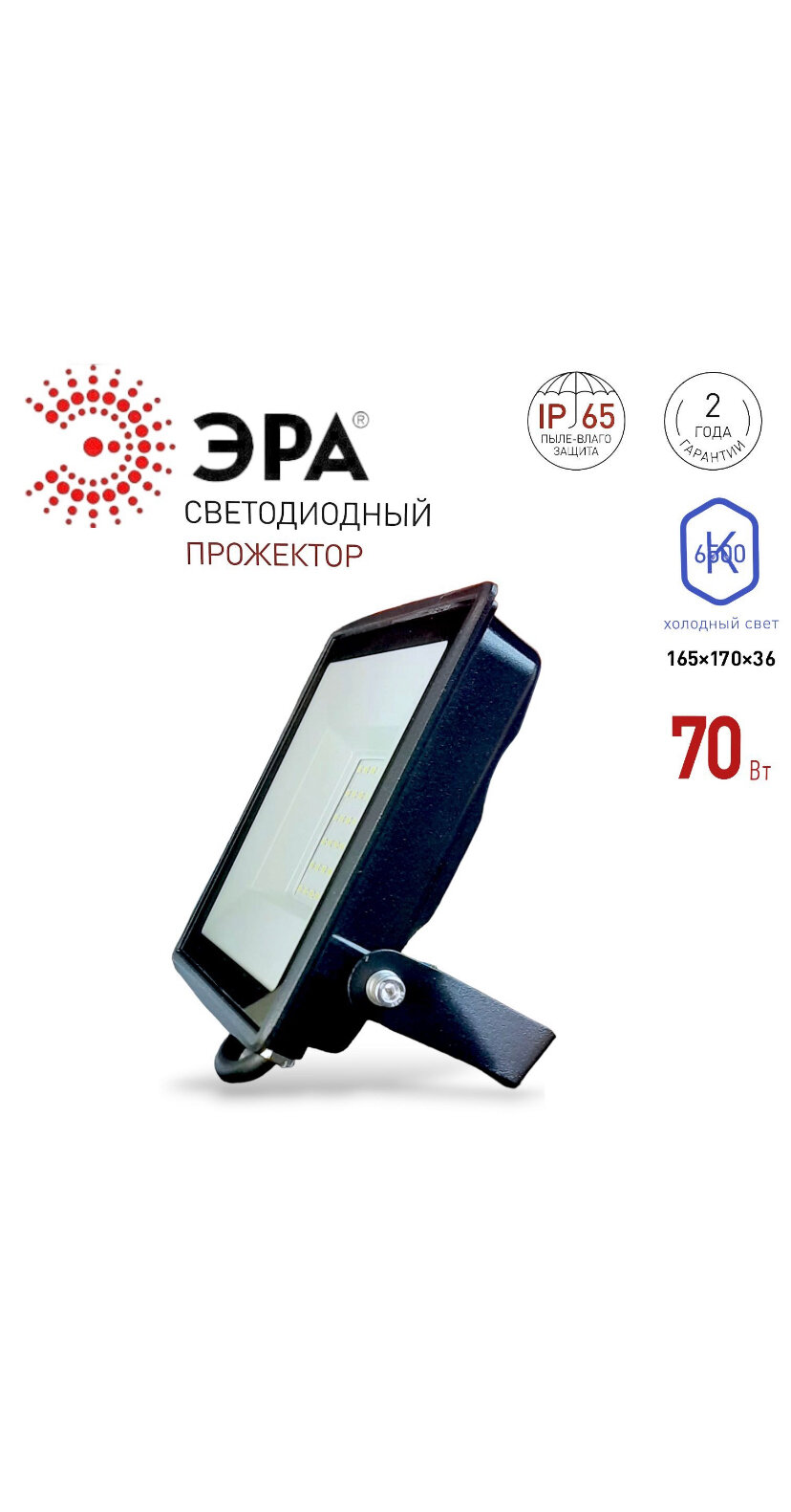 Светодиодный прожектор ЭРА LPR-023-6500K-70Вт информация: