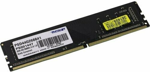 Оперативная память Patriot DIMM DDR4 4Гб(2666МГц, CL19, PSD44G266641) информация: