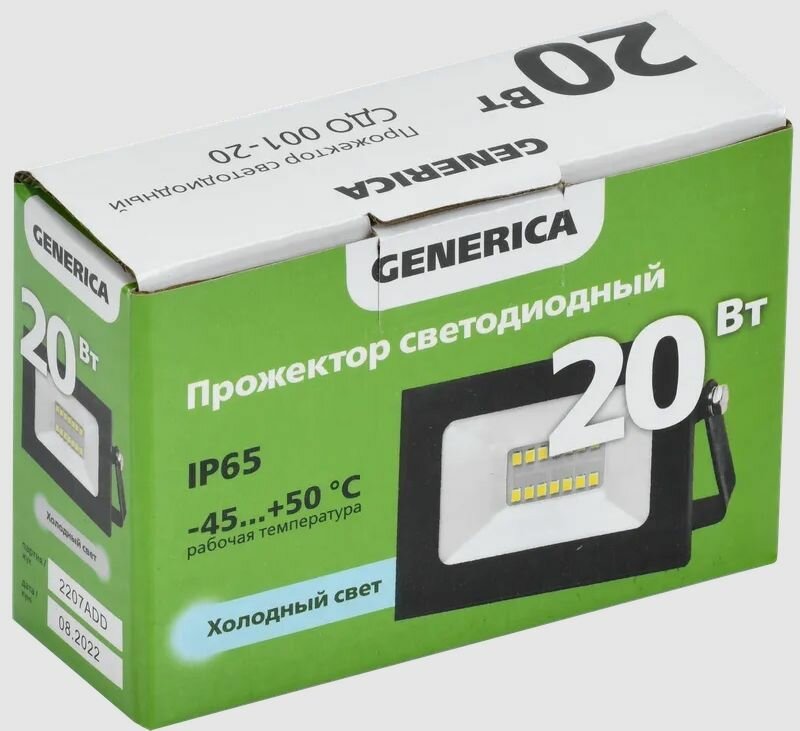 Прожектор светодиодный СДО 001-20 6500К IP65 черн. LPDO501-020-65-K02-G GENERICA информация: