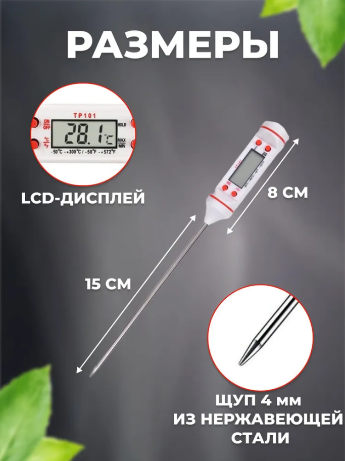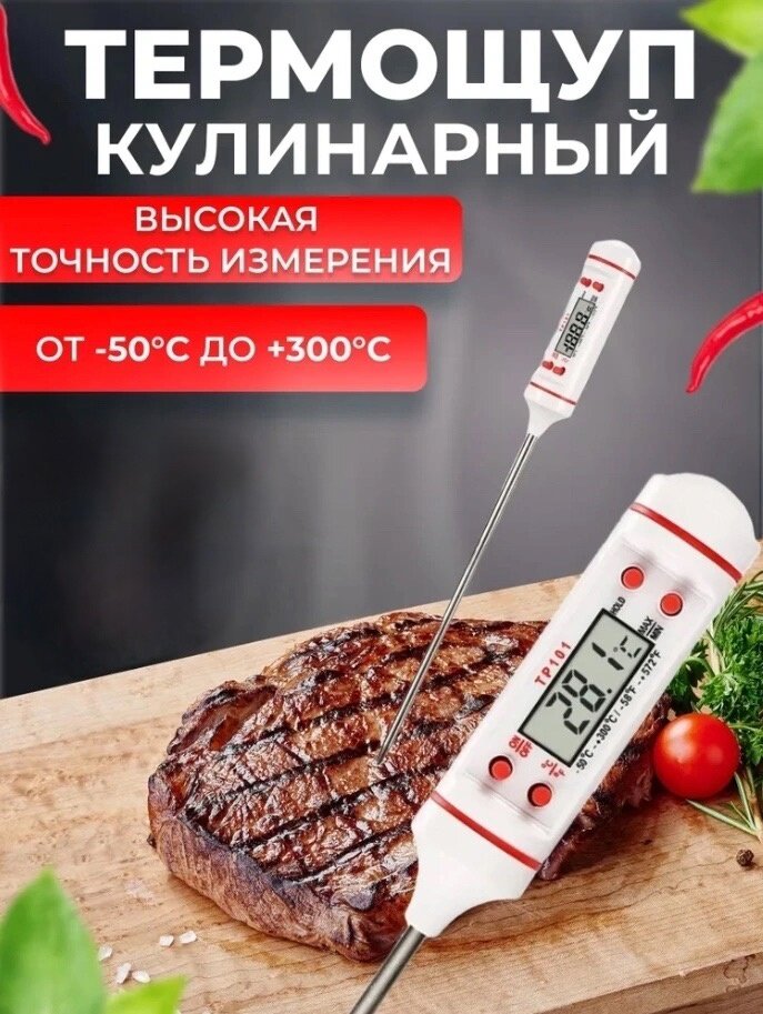 Кулинарный электронный термометр с термощупом, градусник кухонный, Белый информация: