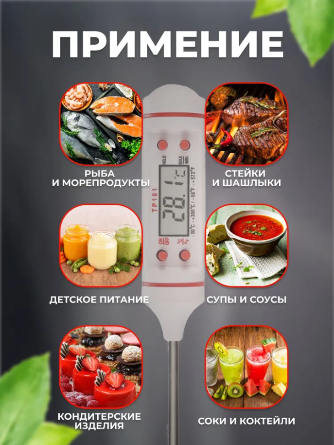 Отзывы на Кулинарный электронный термометр с термощупом, градусник кухонный, Белый