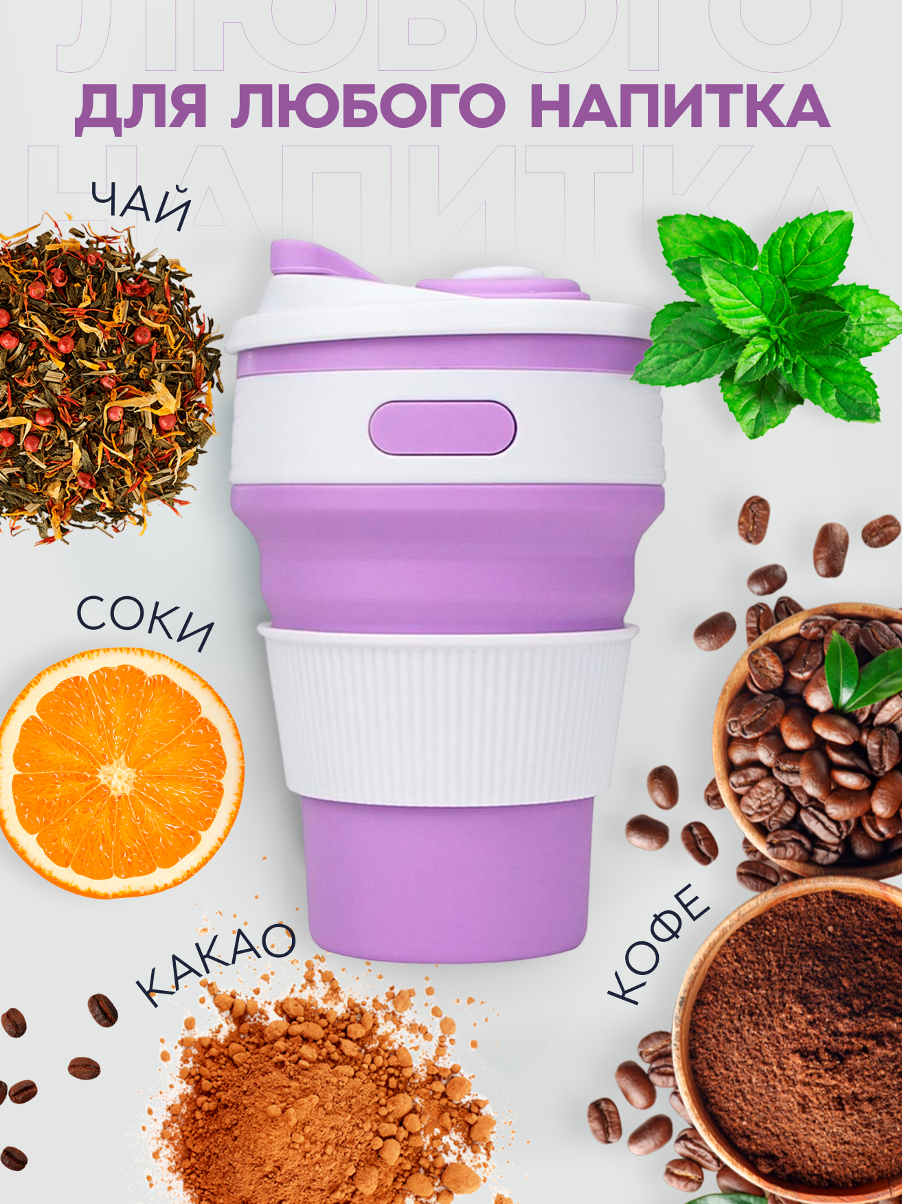 Универсальный складной силиконовый стакан с крышкой для горячих и прохладительных напитков 350 мл