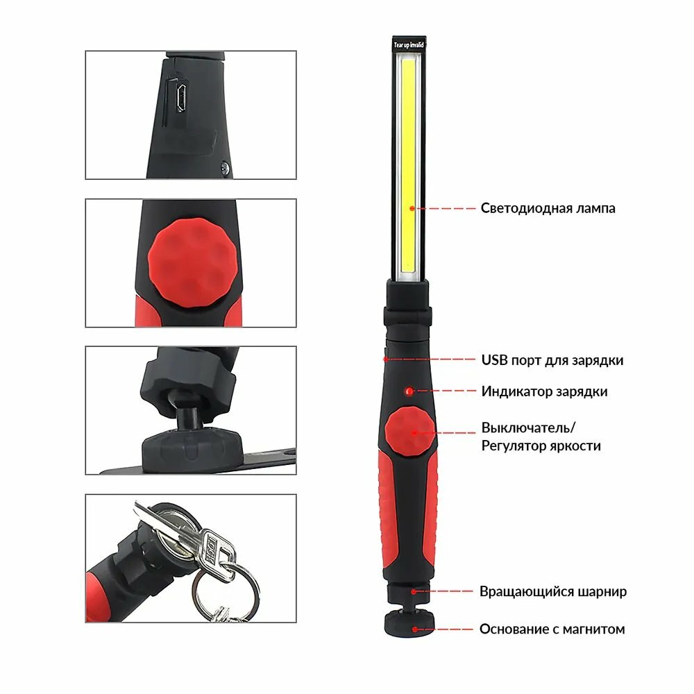 Фонарик ручной аккумуляторный светодиодный/фонарь переносной для ремонта автомобиля/ручной прожектор с магнитом
