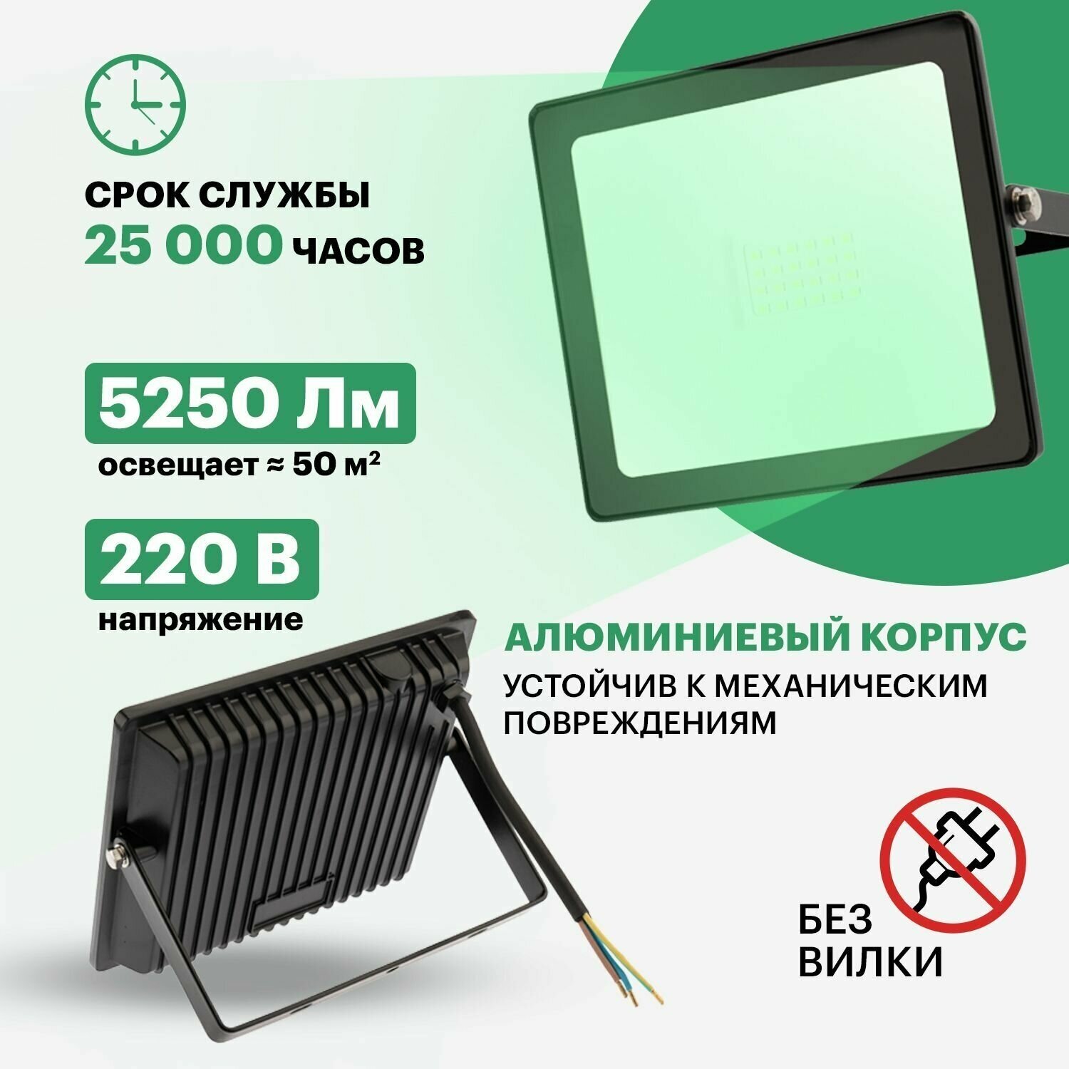 Прожектор светодиодный Rexant 50 Вт, 5250 Лм, цвет свечения зеленый .