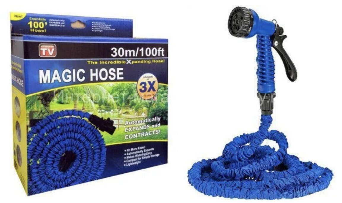 Шланг садовый Magic Hose, растягивающийся шланг для полива, шланг водяной с распылителем, 30 м.