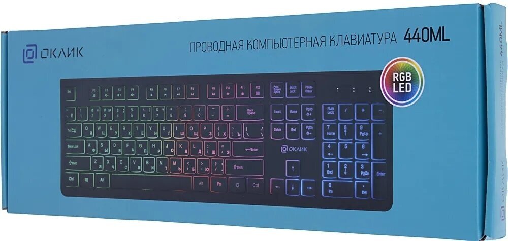 Клавиатура Oklick 440ML Black (usb) 104КЛ, подсветка клавиш (1196537) .