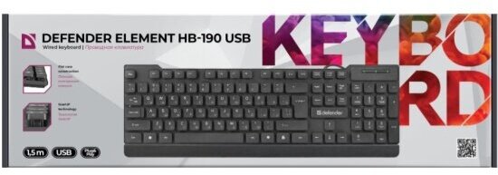 Клавиатура USB DEFENDER ELEMENT HB-190 RU BLACK 45191