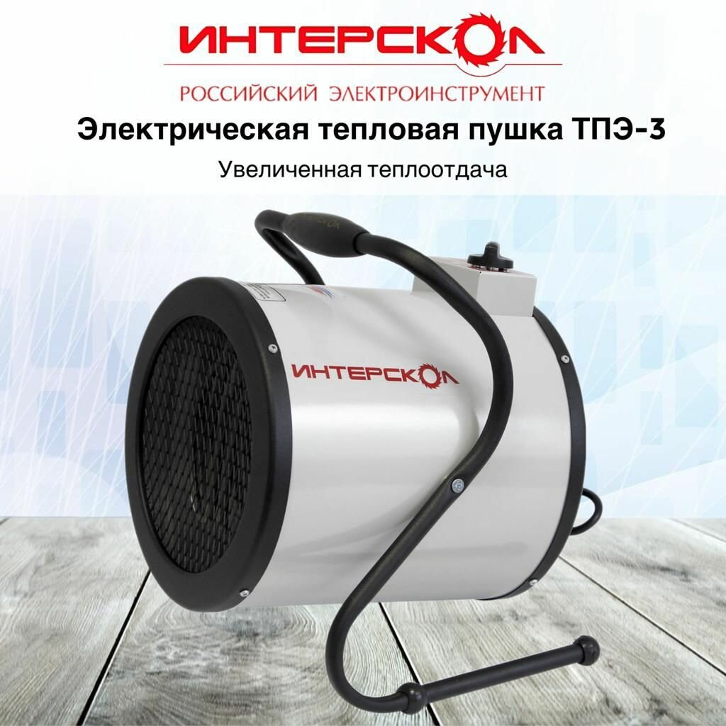 Тепловая пушка ИНТЕРСКОЛ пушка 3/1,5кВт, 220В, 300м3, 300х315х365мм Интерскол ТПЭ-3 (1шт) (ТПЭ-3 (287.1.0.00))