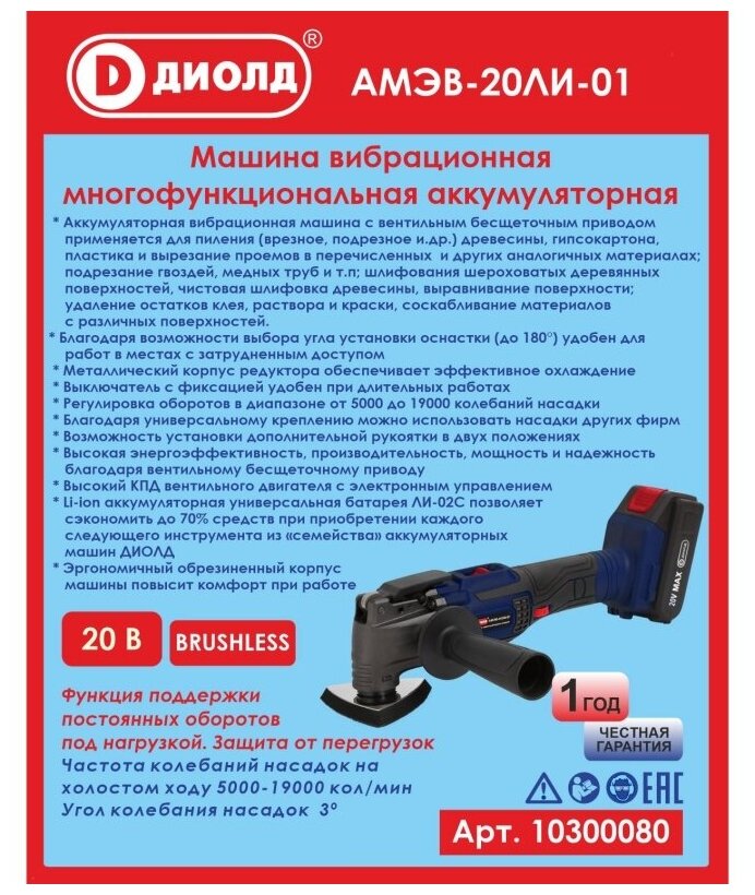 АМЭВ-20ЛИ-01 Машина вибрационная многофункциональная аккумуляторная "диолд" информация:
