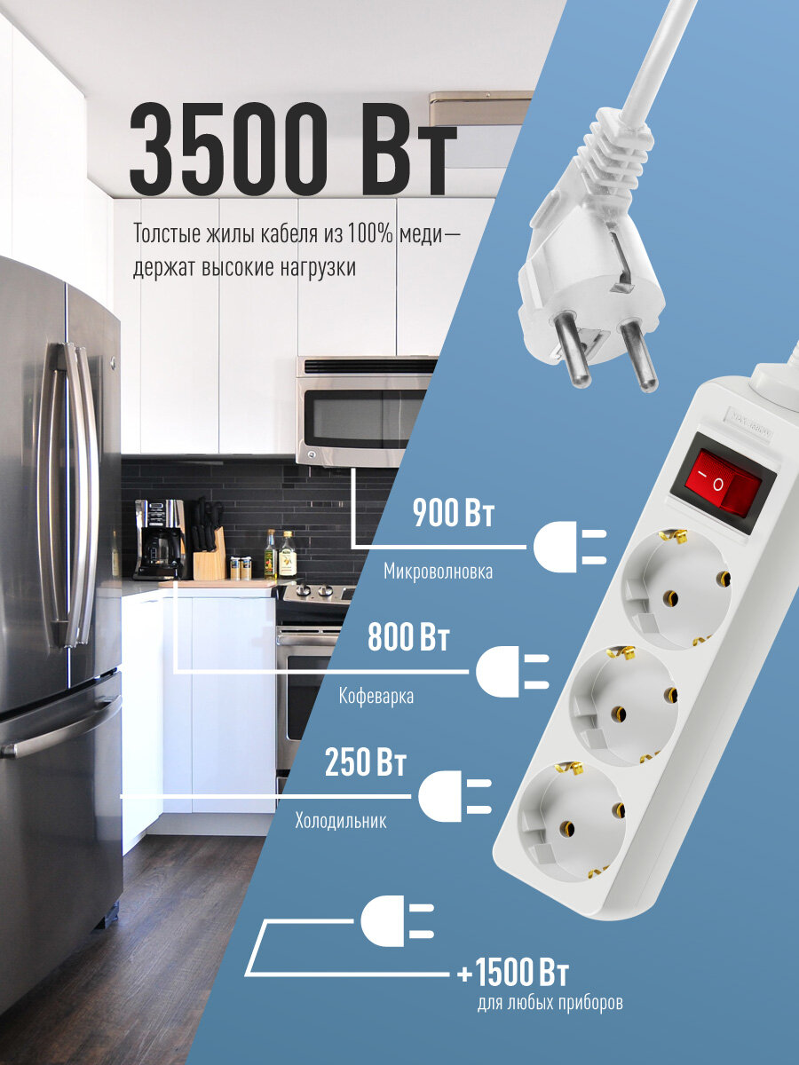 10 цен на Удлинитель космос YKSM3M-3G-Z-V(K) 3 розетки, 3м, белый