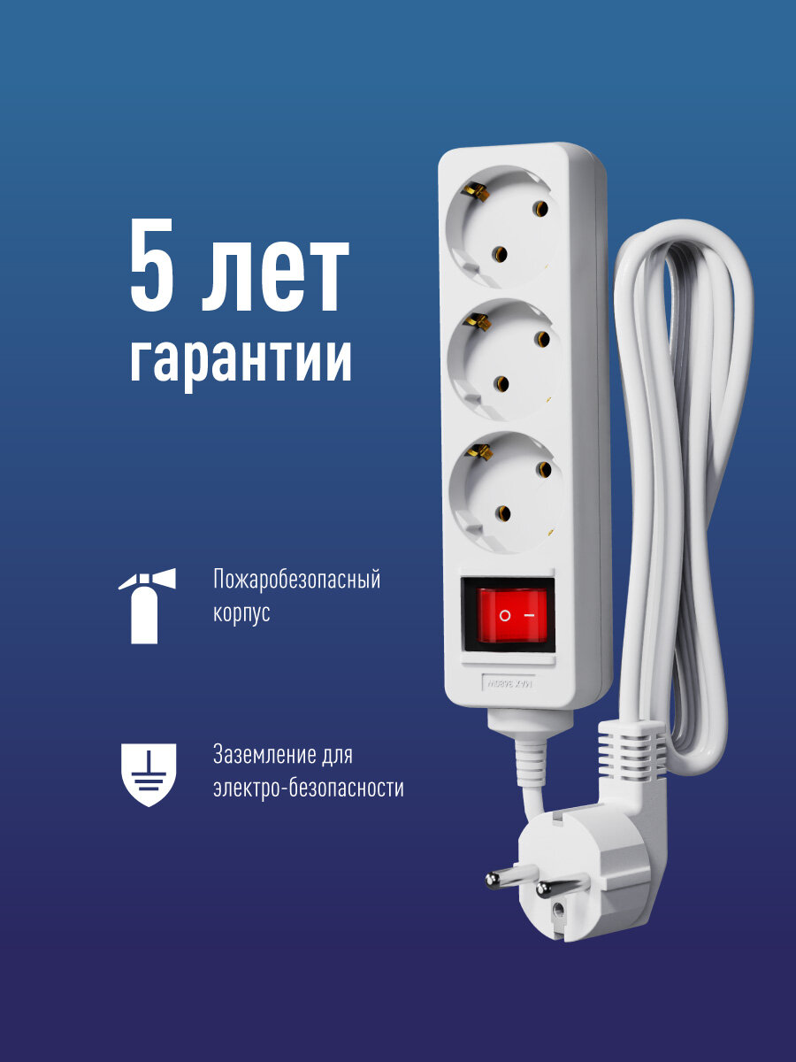 Удлинитель космос YKSM3M-3G-Z-V(K) 3 розетки, 3м, белый информация: