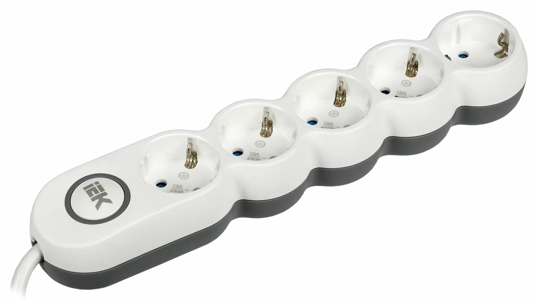 Удлинитель бытовой 5 гн, 5 м, ПВС, 3х1.5 мм2, 16 А, IEK, UNO, WYP53-16-05-05-ZK