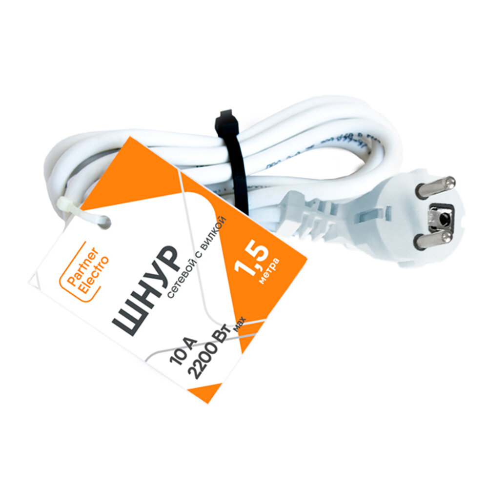 Шнур сетевой с вилкой 1,5 м ПВС-ВП 3х0,75 мм2 10 А Партнер-Электро белый (ЦБ-00013569/4545) информация: