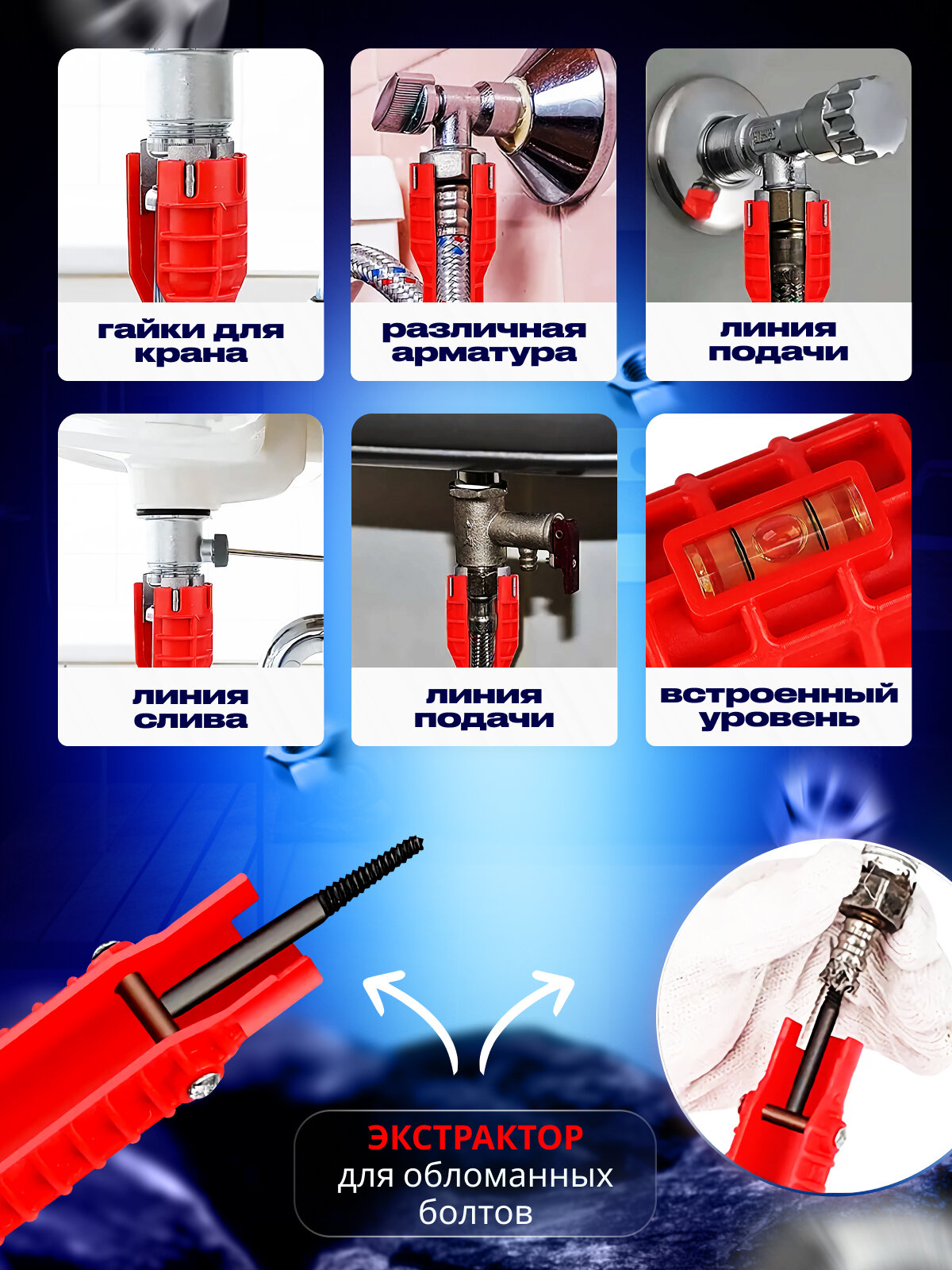 Отзывы на Ключ сантехнический универсальный, для смесителей, многофункциональный для сантехники