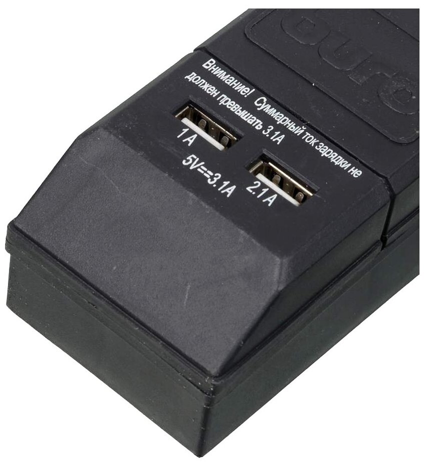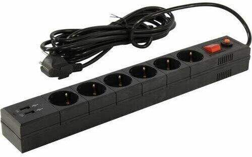 Сетевой фильтр Buro BU-SP5_USB_2A-B, 6 розеток, 5.0 м, черный 1 910 ₽