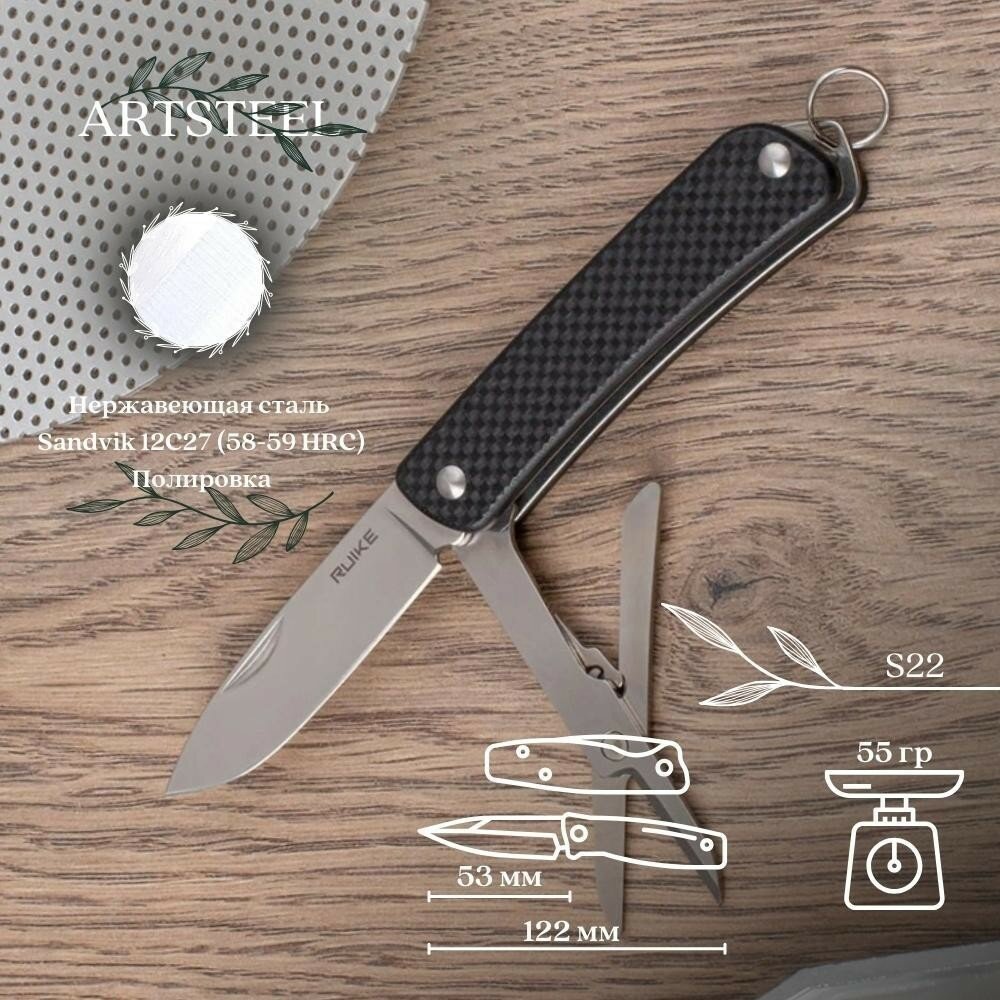 Многофункциональный нож Ruike, сталь Sandvik 12C27, рукоять G10 информация:
