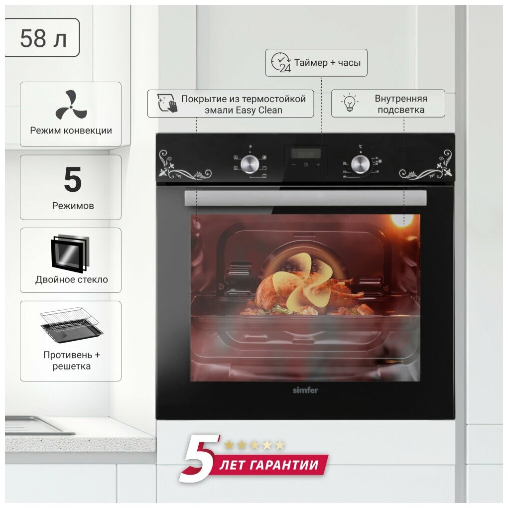 Отзывы на Электрический духовой шкаф Simfer B6EB56022 (5 режимов работы, конвекция)