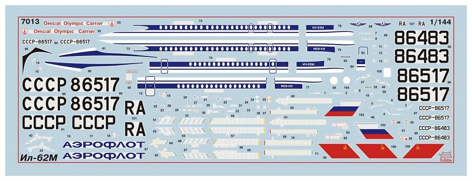 Сборная модель Zvezda 7013 Советский пассажирский авиалайнер Ил-62М