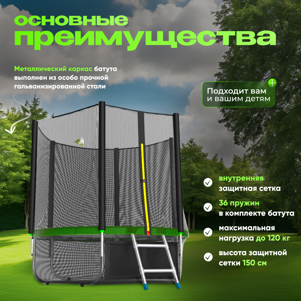Батут каркасный EVO JUMP Just Outside 8ft green с защитной сеткой, диаметр 244 см