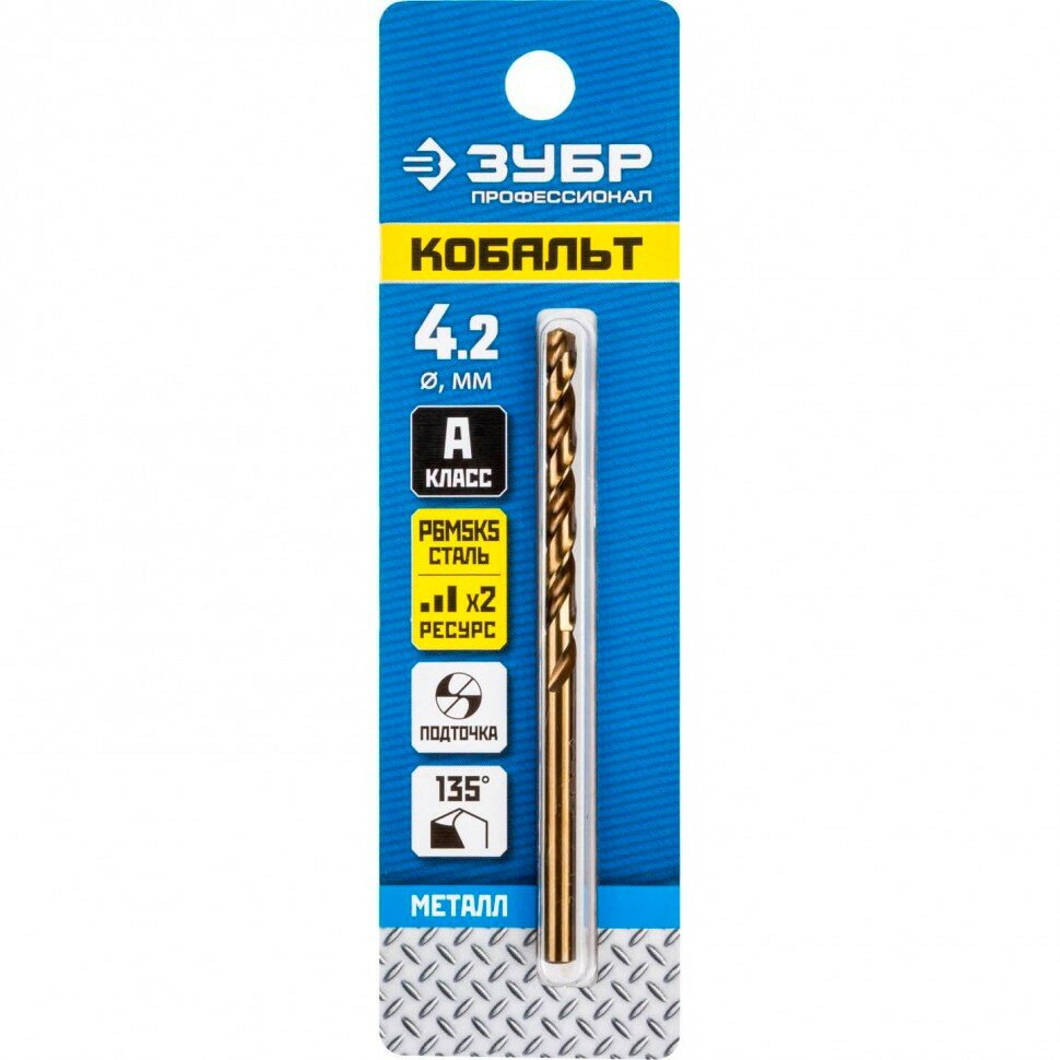 ЗУБР Сверло по металлу кобальт, сталь Р6М5К5, класс А, ЗУБР Профессионал 29626-4.2, d=4,2 мм