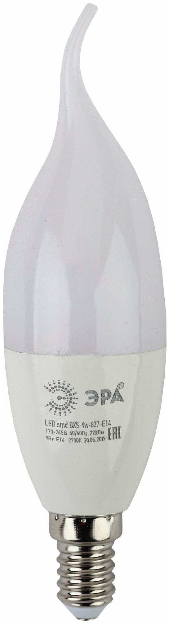 Лампа светодиодная BXS-9w-840-E14 свеча на ветру 720лм, ЭРА Б0027974 (1 шт.) информация: