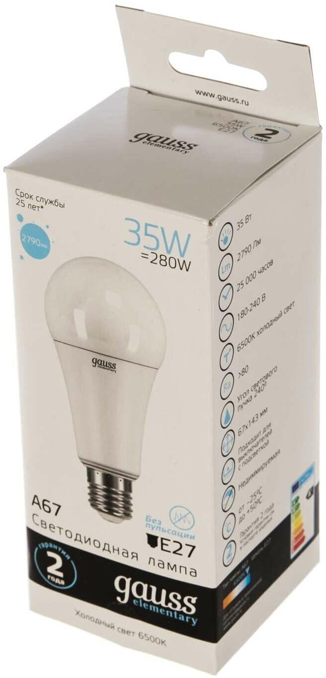 Лампа светодиодная gauss Elementary 70235, E27, A67, 35 Вт, 6500 К