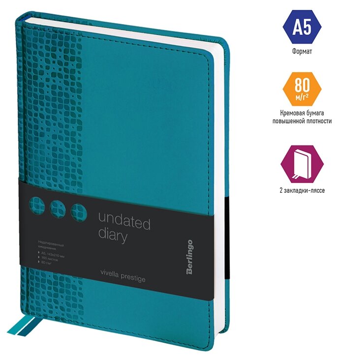Ежедневник недатир. A5, 160л., кожзам, Berlingo "Vivella Prestige", аквамарин (арт. 276377) информация: