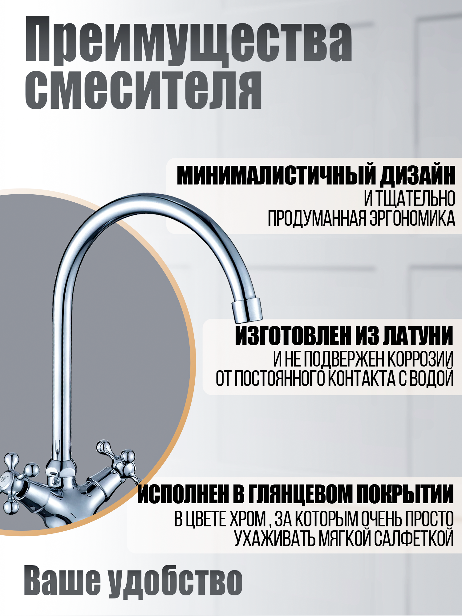 Смеситель для кухни с подключением к фильтру с питьевой водой из нержавеющей стали SUS304 Calorie CAL50116-3