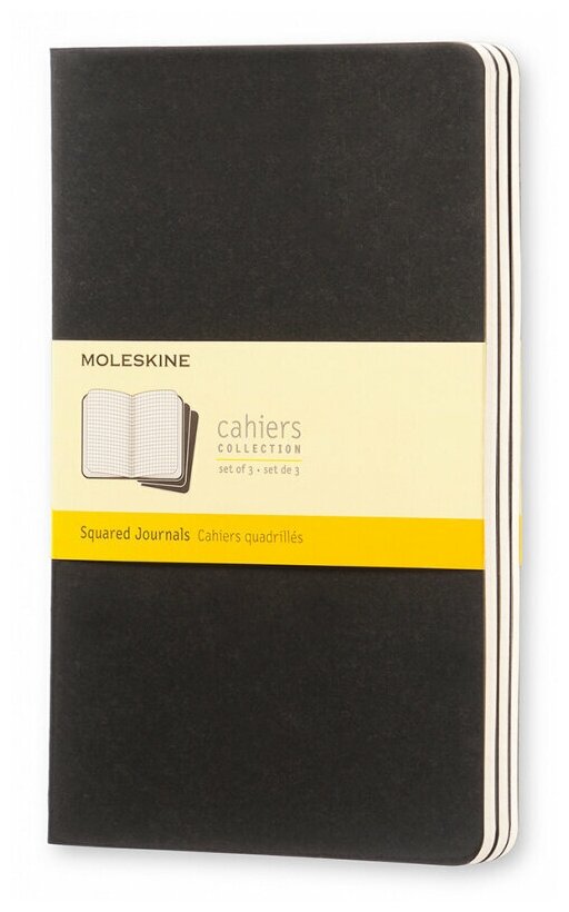 Набор 3 блокнота Moleskine Cahier Journal Large, 80 стр., черный, в клетку