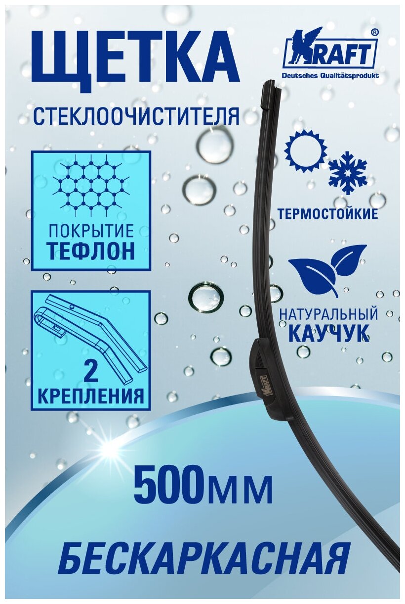 Щётка стеклоочистителя бескаркасная Kraft Teflon 500 мм, KT 830816 информация: