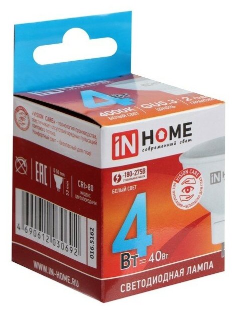 Отзывы на Светодиодная LED лампа LED-JCDR-VC 4W 230В GU5.3 4000К 320Лм IN HOME (упаковка 10 штук) 4690612030692