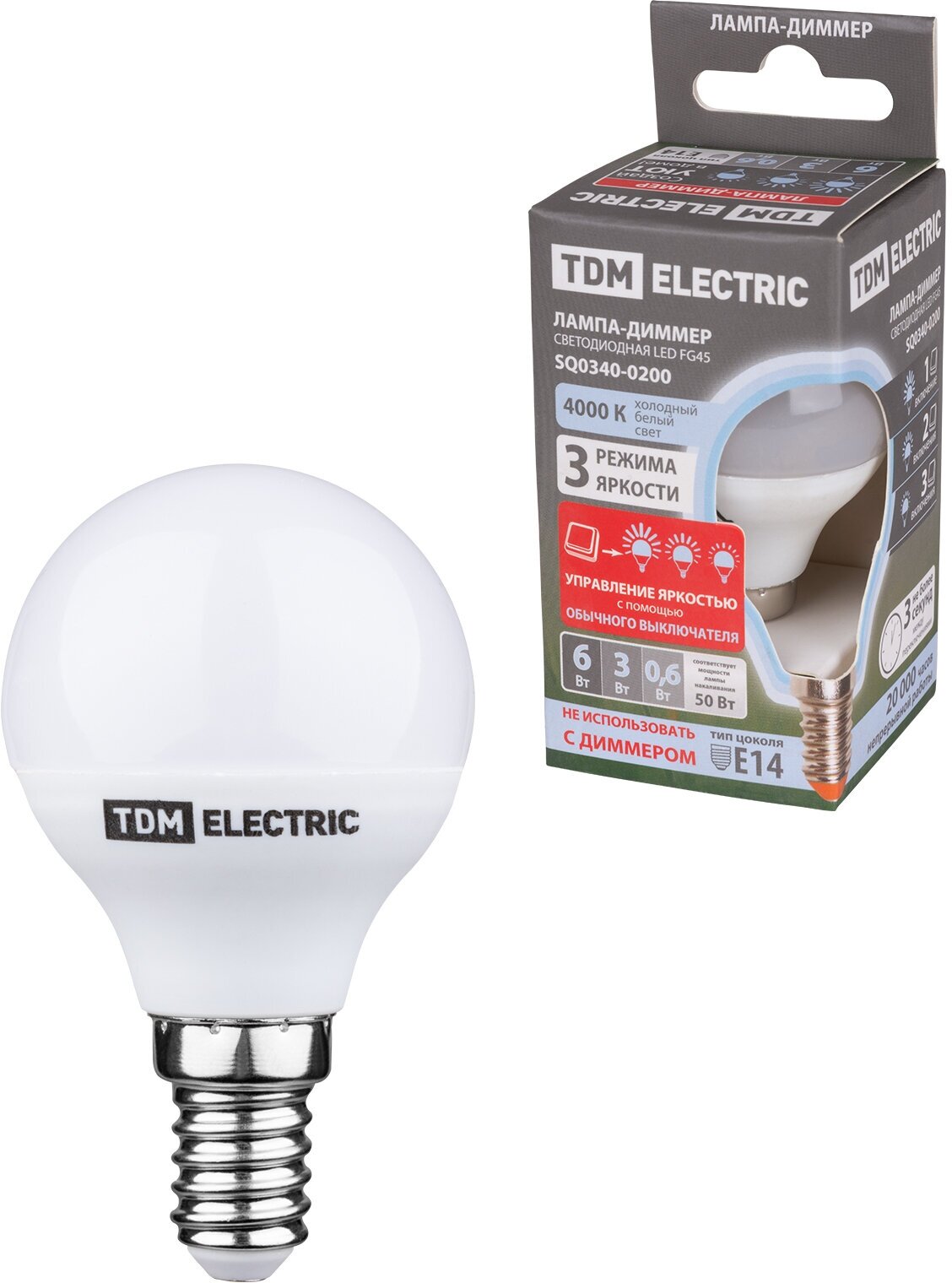 Отзывы на Лампа светодиодная FG45-6 Вт-230 В-4000 К–E14 "лампа-диммер" TDM 10 шт