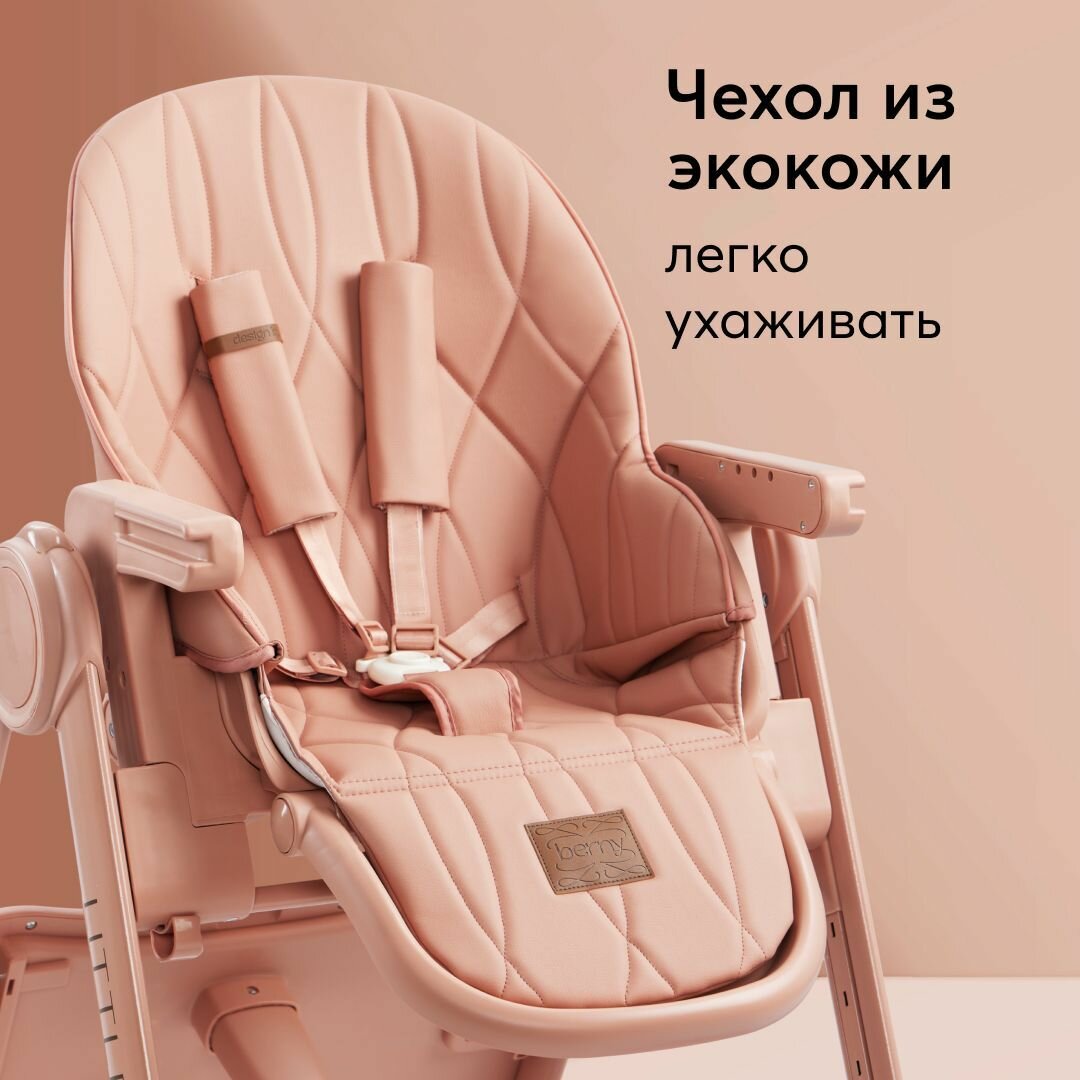 Стульчик для кормления Happy Baby Berny Lux, до 25 кг, шезлонг, экокожа, розовый