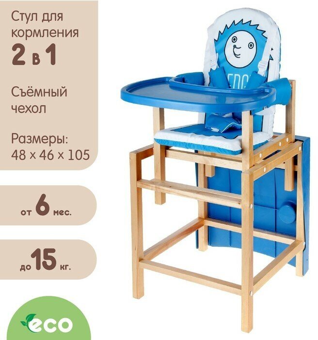 Стол стул Трансформер бэби ежик синий из массива, лак для кормления, отдыха, развития 6 347 ₽