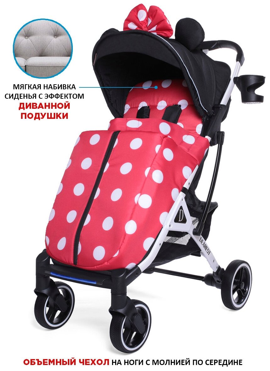Коляска прогулочная Dearest 819 PLUS модель 2023, с механической спинкой, большим капюшоном, полная комплектация, (красная точка)