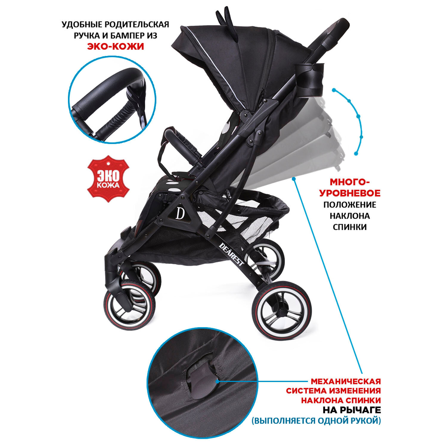 Отзывы на Коляска прогулочная Dearest 819 PLUS модель 2023, с механической спинкой, большим капюшоном, полная комплектация, белая рама (красная точка)