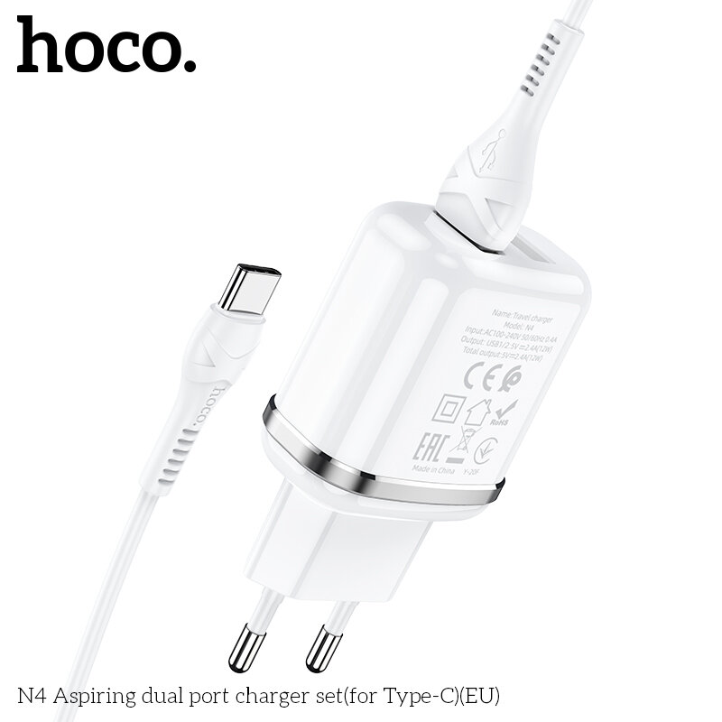 Сетевое зарядное устройство Hoco N4 Aspiring dual port charger set for Lightning Белый информация: