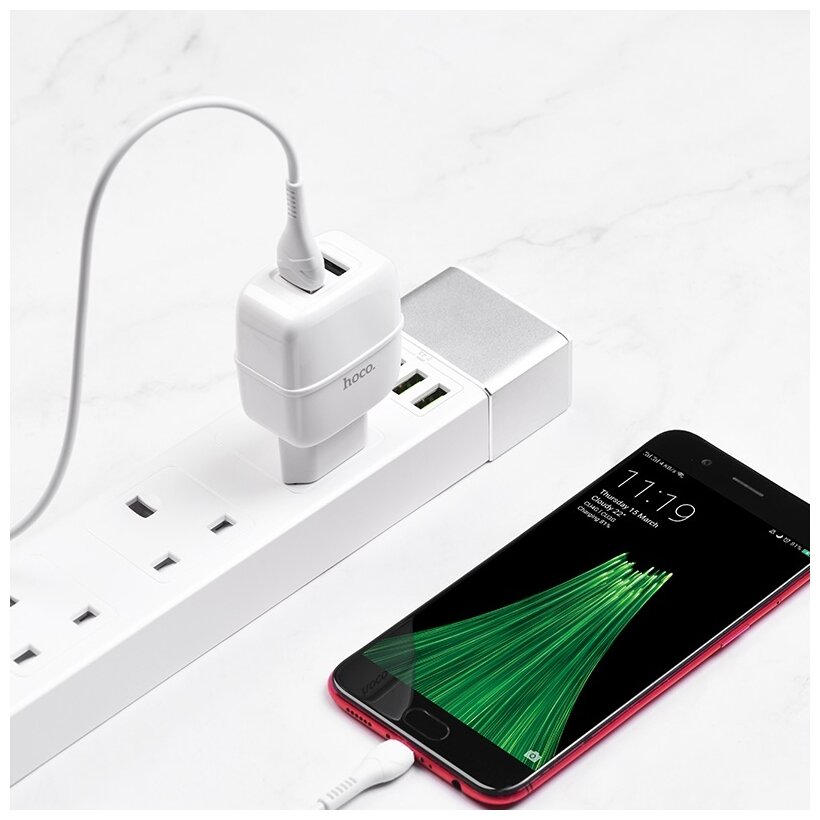 Сетевое зарядное устройство (СЗУ) Hoco C77A (2 USB) + кабель MicroUSB, 2.4 А, белый информация: