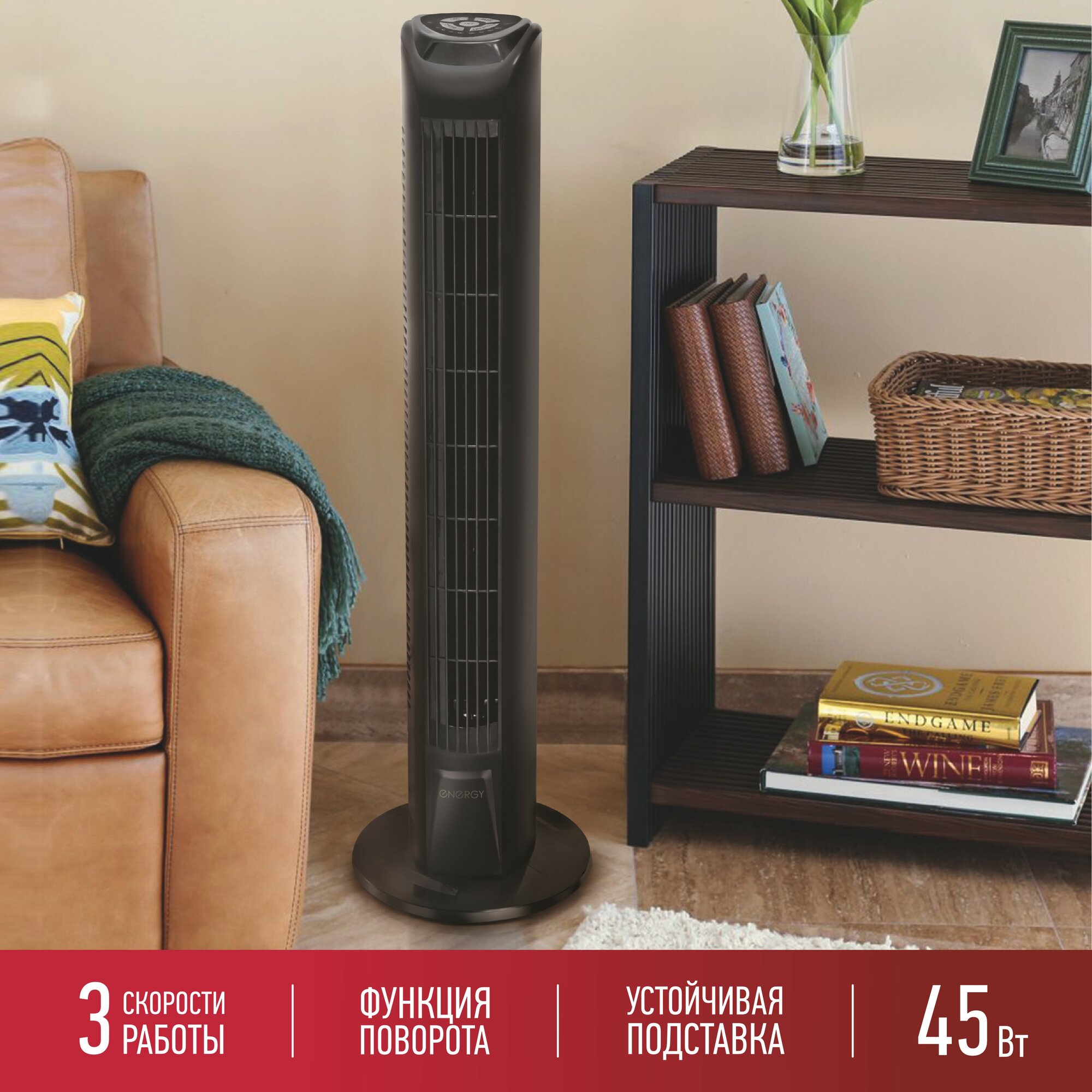 Вентилятор мощный ENERGY EN-1616 TOWER, напольный, 45 Вт, 3 скорости,