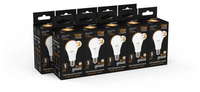 Лампочка светодиодная Е27 Груша 12Вт теплый свет 3000K упаковка 10 штук шаговое диммирование Gauss информация: